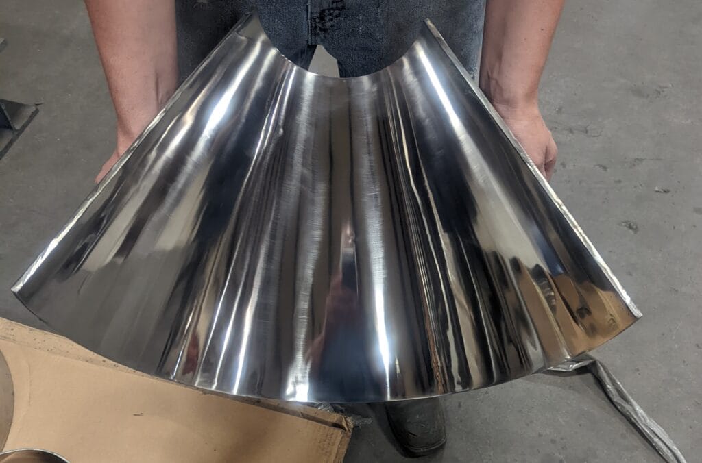 Mirror finish metal polishing for food grade and pharmaceutical applications.